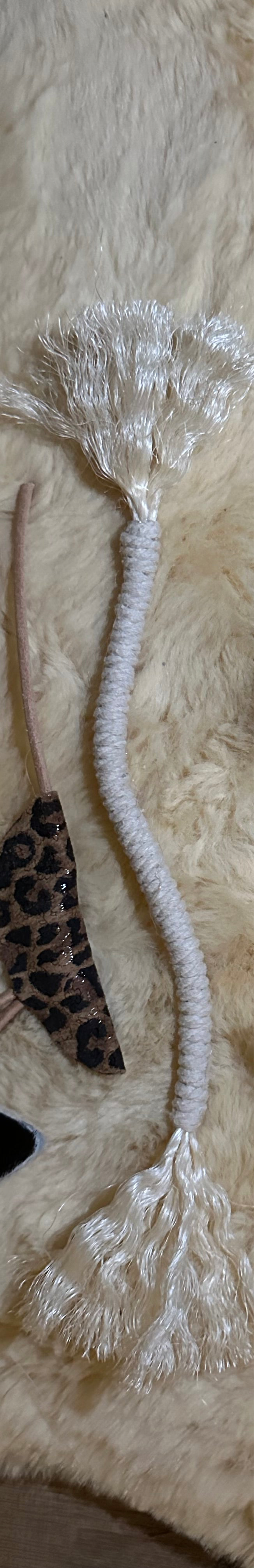 Diese besondere Schlange besteht aus 6 mm starkem Sisalseil, das kunstvoll mit Makramee umwickelt ist. Durch die feste Wicklung behält sie beim Biegen ihre Form und Struktur – perfekt zum Schleppen, Werfen und Zupfen.